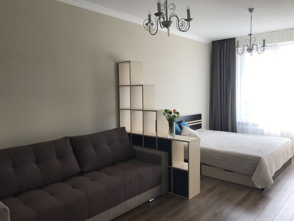 Здається в оренду квартира в новобудові, по вул. Порохова 11/14 пов.,закрита територія, сучасний якісний ремонт, велика кімната та гардеробна, затишна кухня з балконом, зручні меблі, двоспальне ліжко, диван, вся побутова техніка, кондиціонер, індивідуальне опалення, підігрів підлоги В будинку встановлений генератор