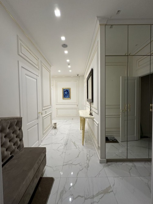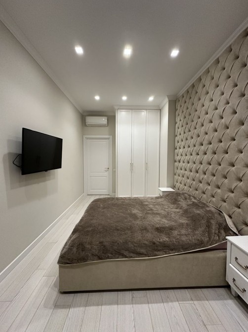 Квартира складається з просторої кухні-вітальні, 2 окремих спалень, 3 гардеробних, 2 ванних кімнат, господарського блоку. Є всі необхідні меблі, побутова техніка, сейф, бойлер + центральна гаряча вода, система теплої підлоги, мультирум-аудіо система, смарт ТВ. Під час блекауту в будинку працюють ліфти ( генератор) , є вода та опалення.