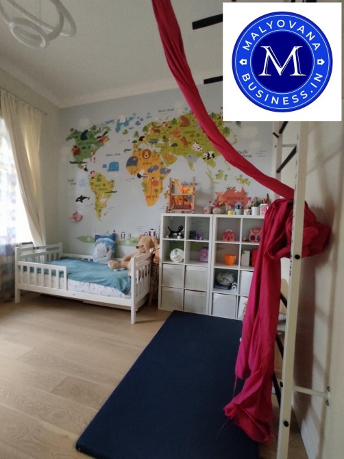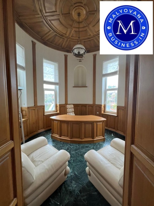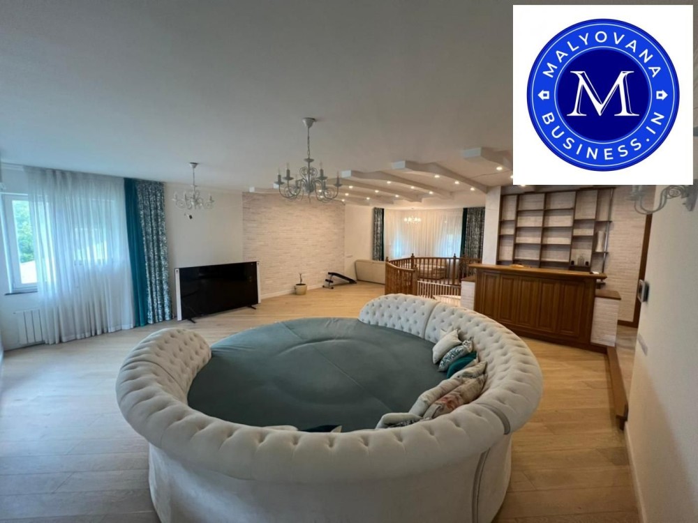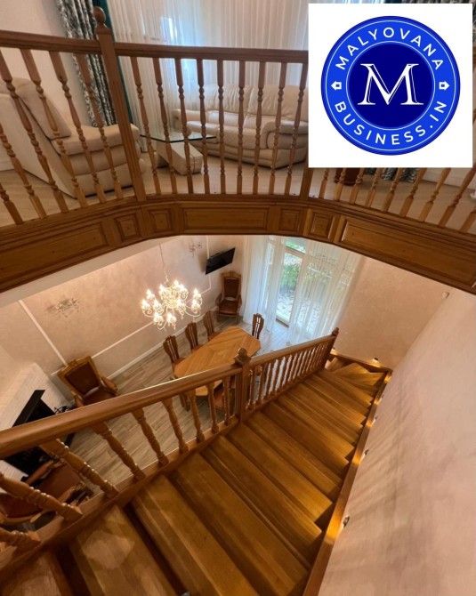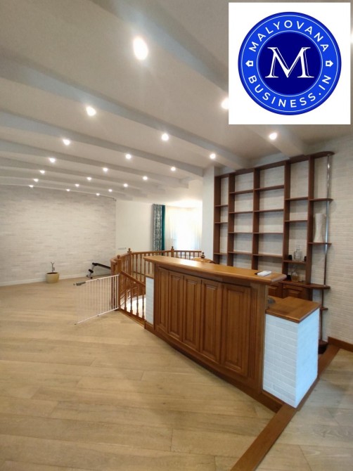 На 3-му поверсі — кабінет із меблями з масиву дерева, ще одна спальня, велика зала з круглим диваном, барна стійка, санвузол.