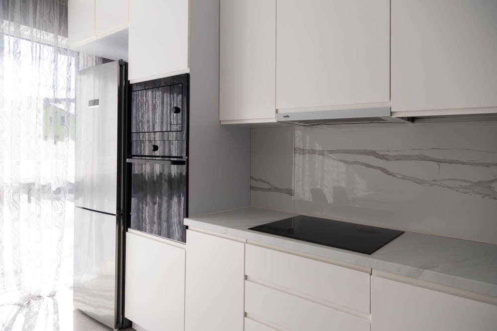 Вся необхідна побутова техніка: кондиціонер, пральна машина, сушильна машина, холодильник, духова шафа, варильна поверхня, посудомийка.