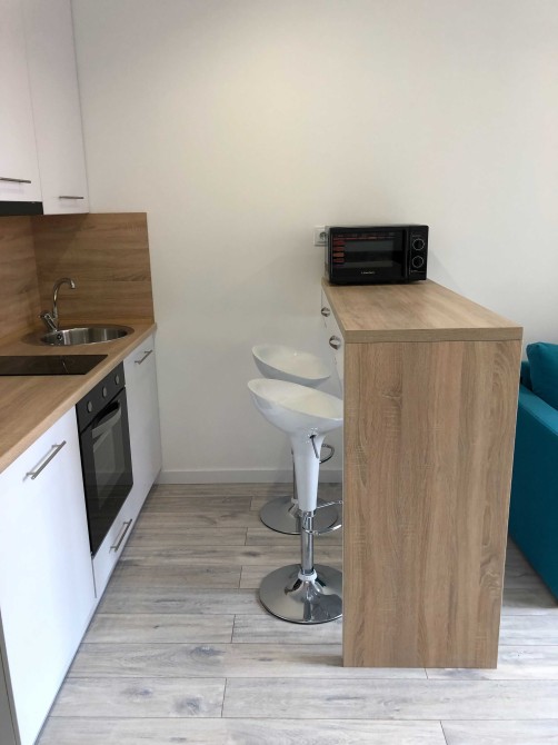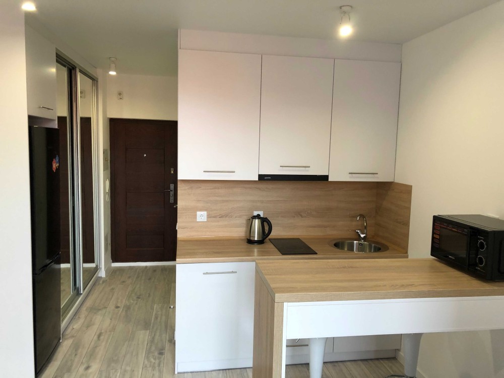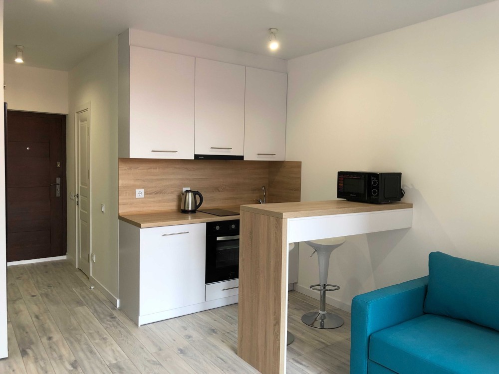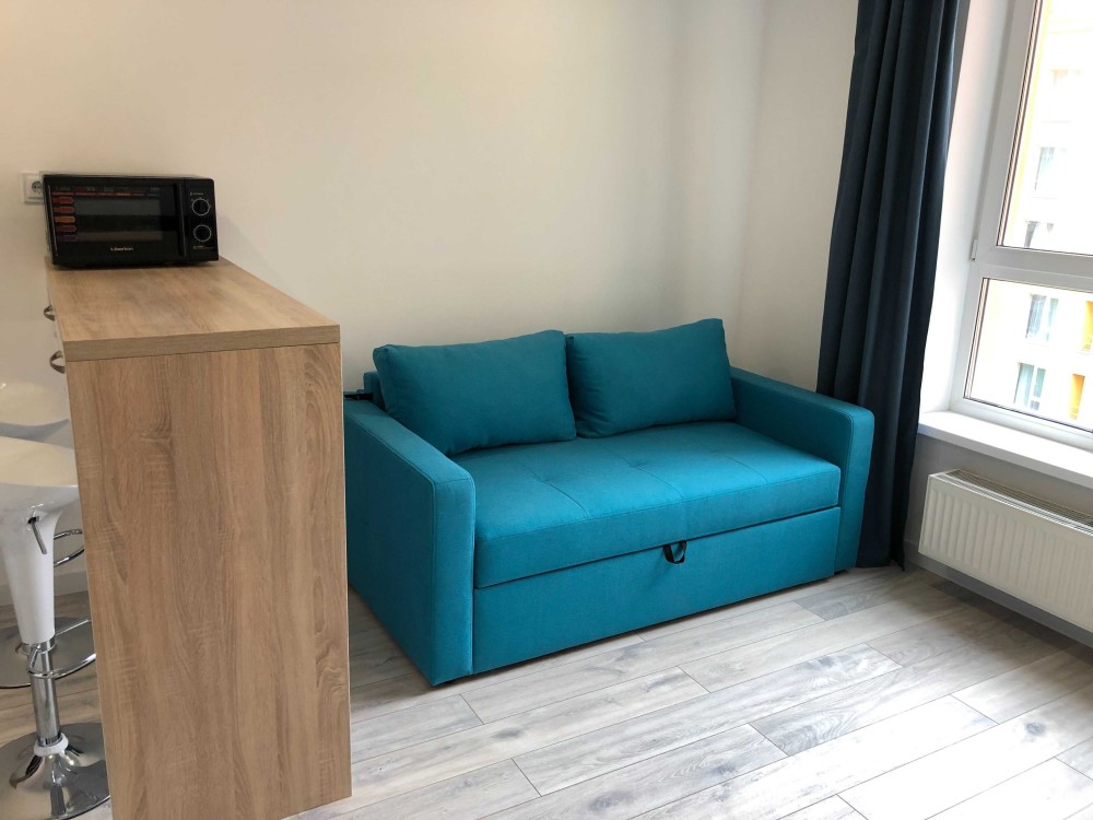 Завдяки оптимізованій площі економія щомісячних комунальних платежів. При цьому в квартирі є все необхідне: телевізор, інтернет, кондиціонер, холодильник, мікрохвильова піч, скляна варильна поверхня, духова шафа, пральна машина, шафа-купе, розкладний диван.