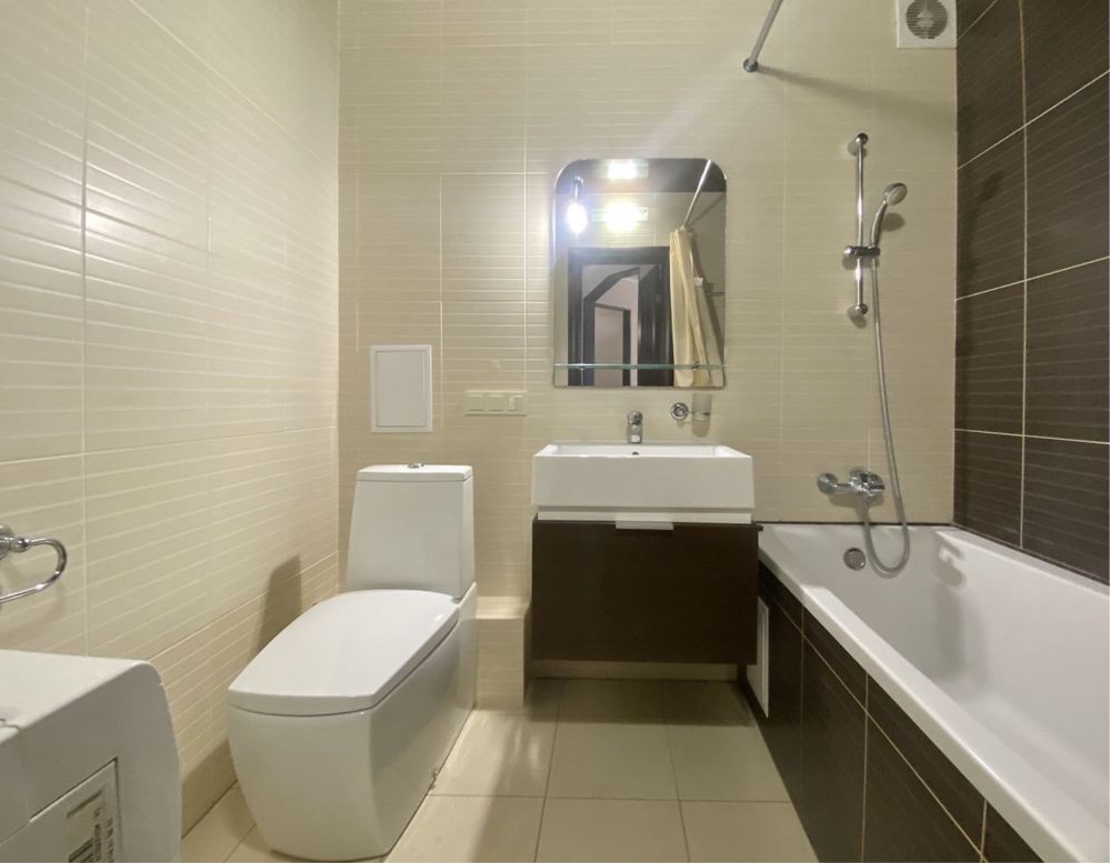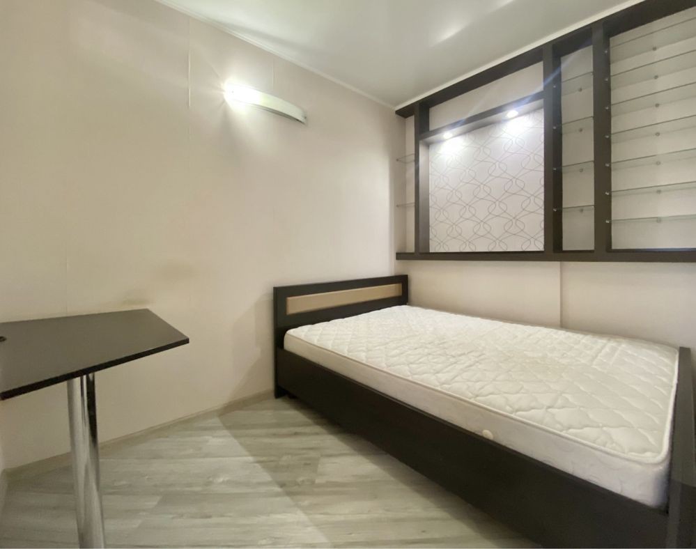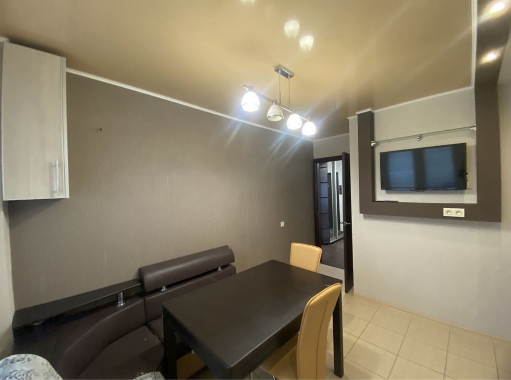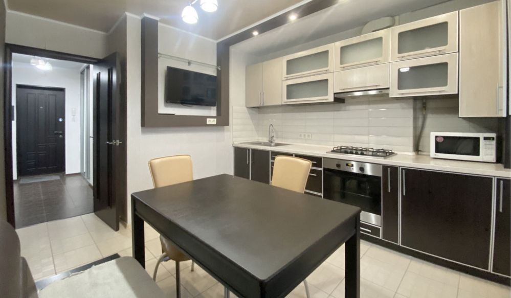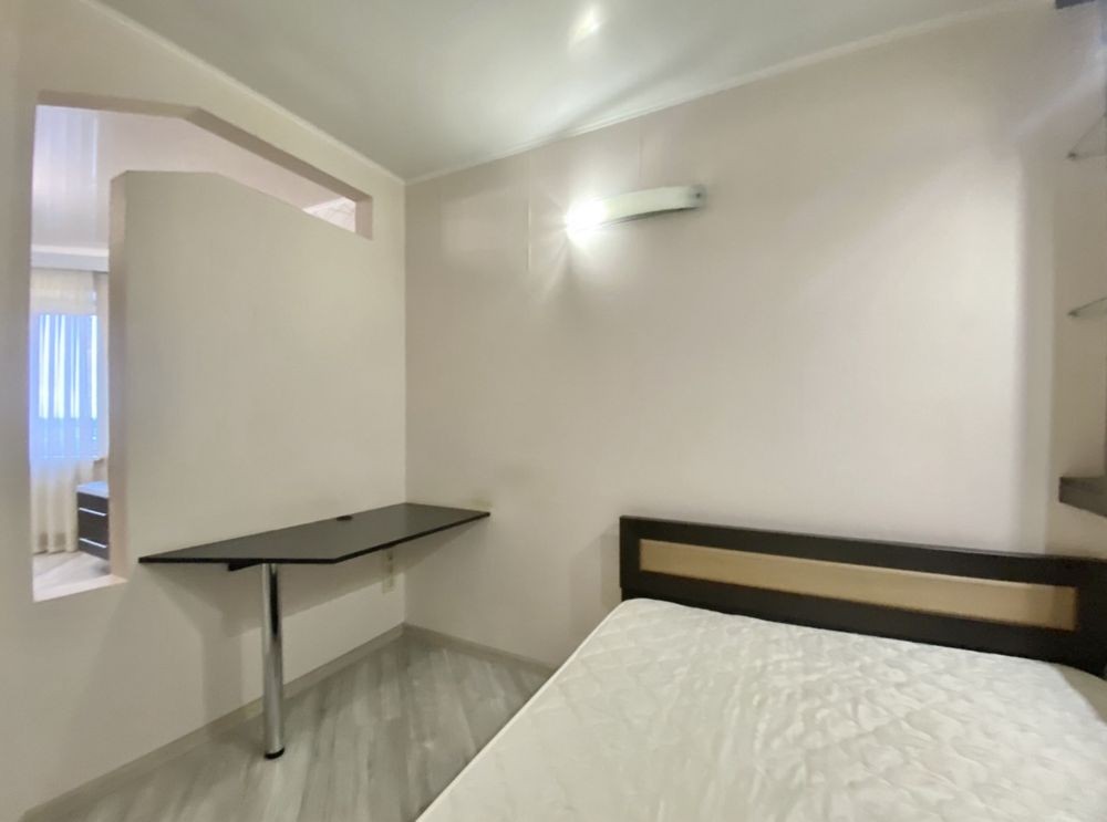 Ця простора і затишна, квартира має все необхідне для комфортного життя, кімната поділена на 2 зони спальню з двомісним ліжком і вітальню з розкладаним диваном, де зроблений кондиціонер і закладені всі виводи і кріплення під «домашній кінотеатр», на стіні поряд з вимикачами встановлений дистанційний пульт управління газовим котлом і кліматом у квартирі.