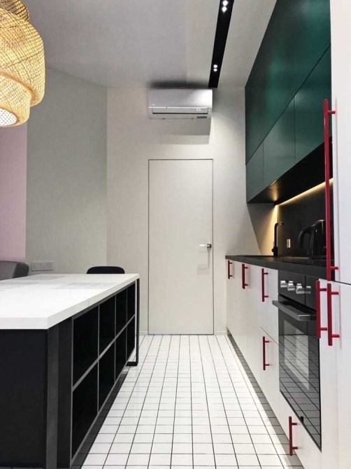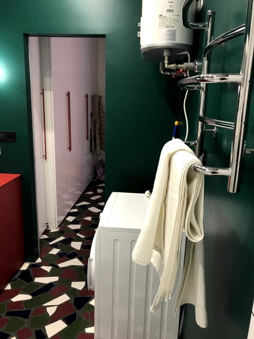 Кухня укомплектована итальянской техникой -холодильник, посудомоечная машина, духовой шкаф. Есть счетчик на отопление.