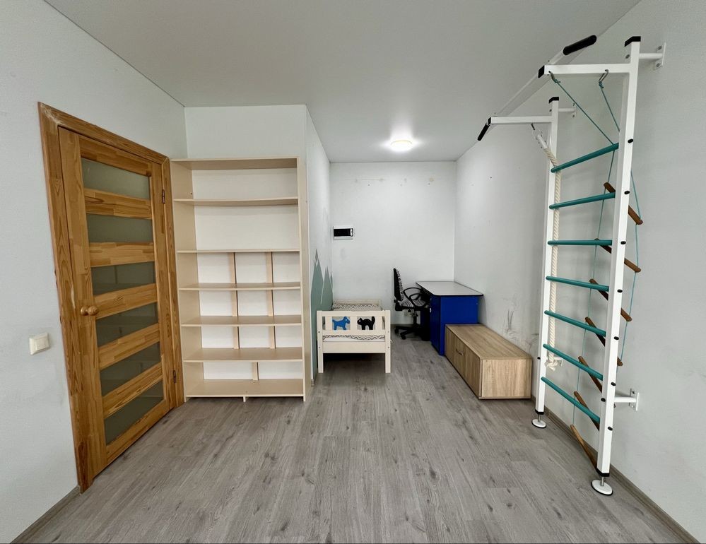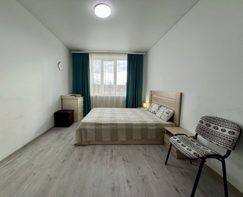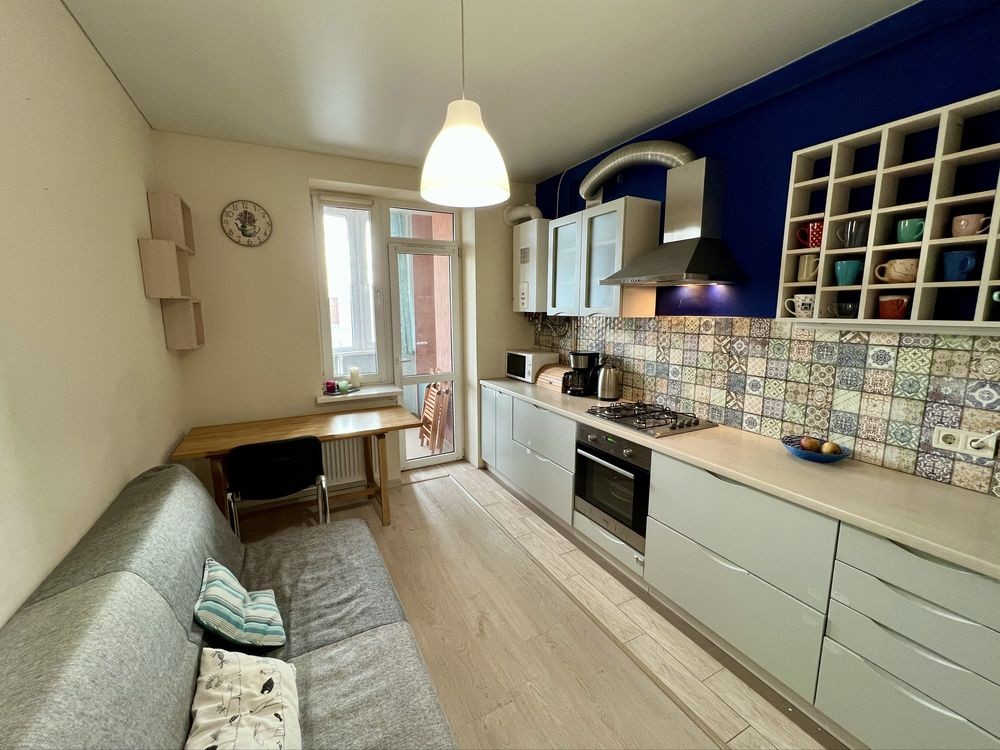 Гарне планування, квартира складається з великої кухні-вітальні та окремої спальні з дитячою або робочою зоною. Також, у квартирі є велика засклена лоджія та окрема кімната-гардеробна.