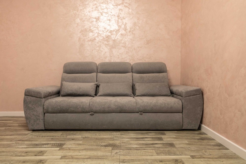 • Є сірий диван, що додає затишку та функціональності.