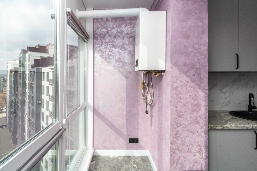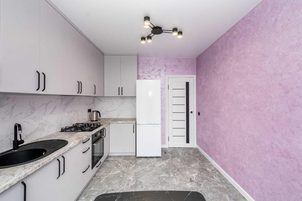 • Пурпурова акцентна стіна додає яскравості та естетики.