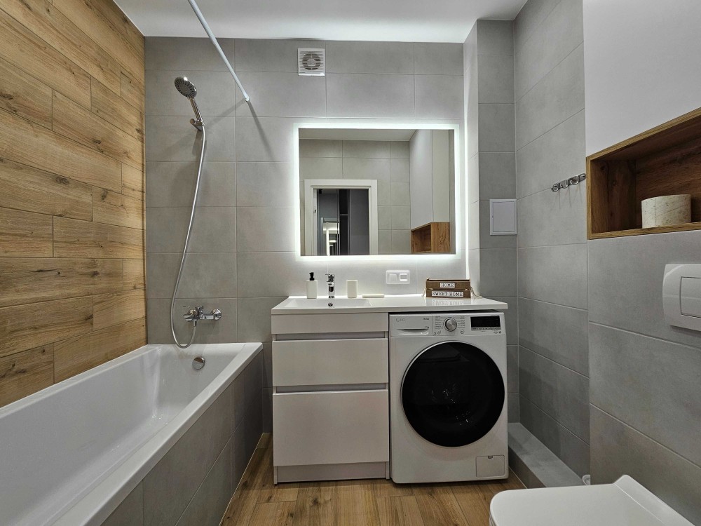- опалення з автоматичним регулюванням температури, тепла підлога у ванній кімнаті, кондиціонер;