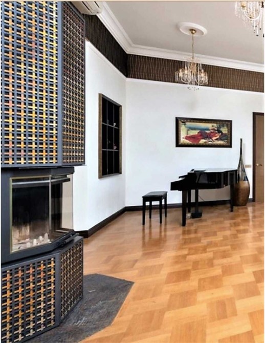 Планування: великий камінний зал, кухня-їдальня, дві спальні, кабінет, дві ванні кімнати, гардеробна, два балкони.