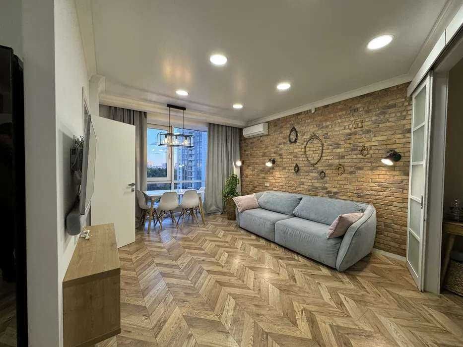 ЖК із закритою територією, охороною, відеоспостереженням, генератором. Панорамні вікна, тепла підлога, якісна техніка (посудомийна, осмос, Side-by-side холодильник, пральна/сушарка, кондиціонер, Smart TV). Відкритий балкон з видом на сквер. Поруч парк Перемоги, метро Дарниця/Чернігівська — до 15 хв. пішки.