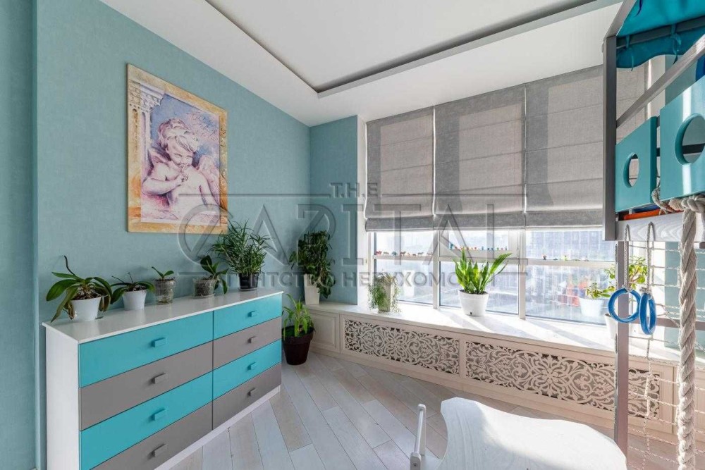 Житло розташоване на 10 поверсі 24-поверхового будинку. У квартирі виконано авторський ремонт із використанням високоякісних матеріалів (Tiffany, Versace, Swarovski тощо). Уся меблі виготовлені та привезені на замовлення з Італії.