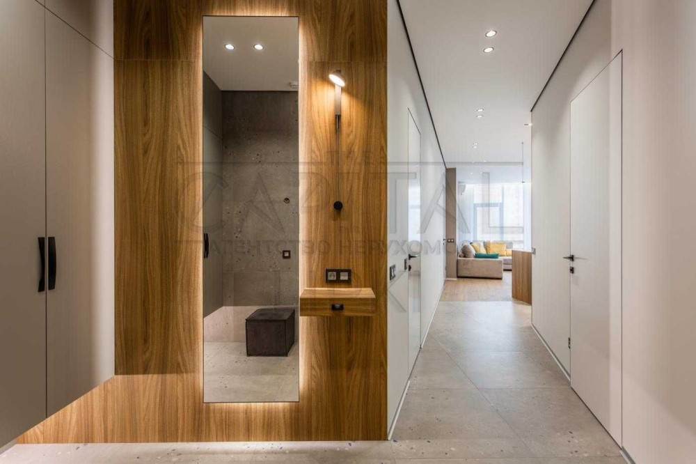 Зона передпокою відрізняється великою глибокою вбудованою шафою для зберігання верхнього одягу та взуття, що забезпечує багато місця для зберігання. Загалом в квартирі передбачено численні зони для зберігання речей, що робить її максимально зручною для проживання.