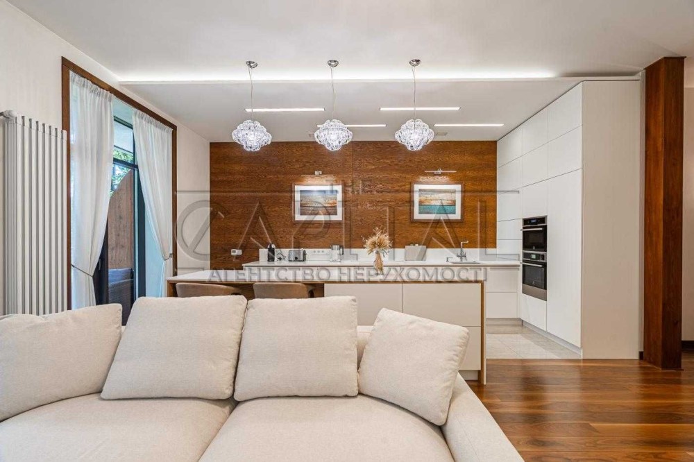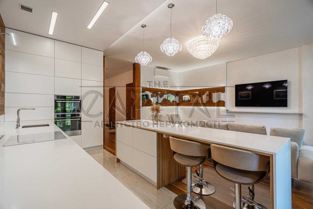 Велика кухня-вітальня: Це ідеальне місце для сімейних обідів, зустрічей з друзями та розваг. Простора кухня, яка дозволяє зручно готувати та спілкуватися одночасно.