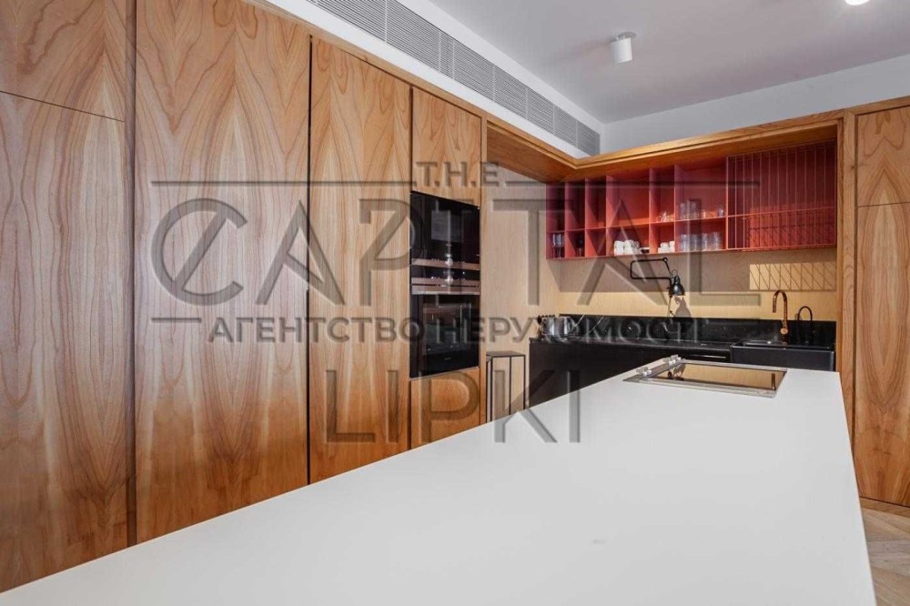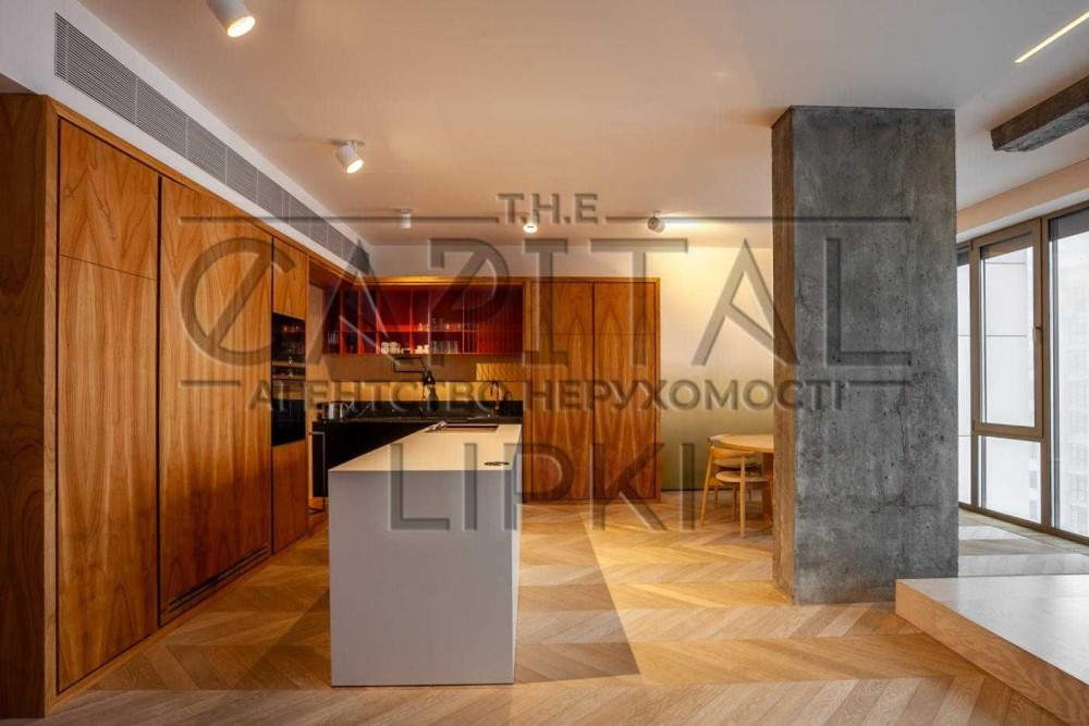 Повністю укомплектована сучасними італійськими меблями та найкращою технікою. Планування апартаментів включає в себе: open space кухні-вітальні, їдальня, спальня, гардеробна, гостьова ванна кімната, кабінет, пральня. Квартира розташована на видовому поверсі, панорамні вікна від підлоги до стелі. Квартира оснащена системою «розумний дім».