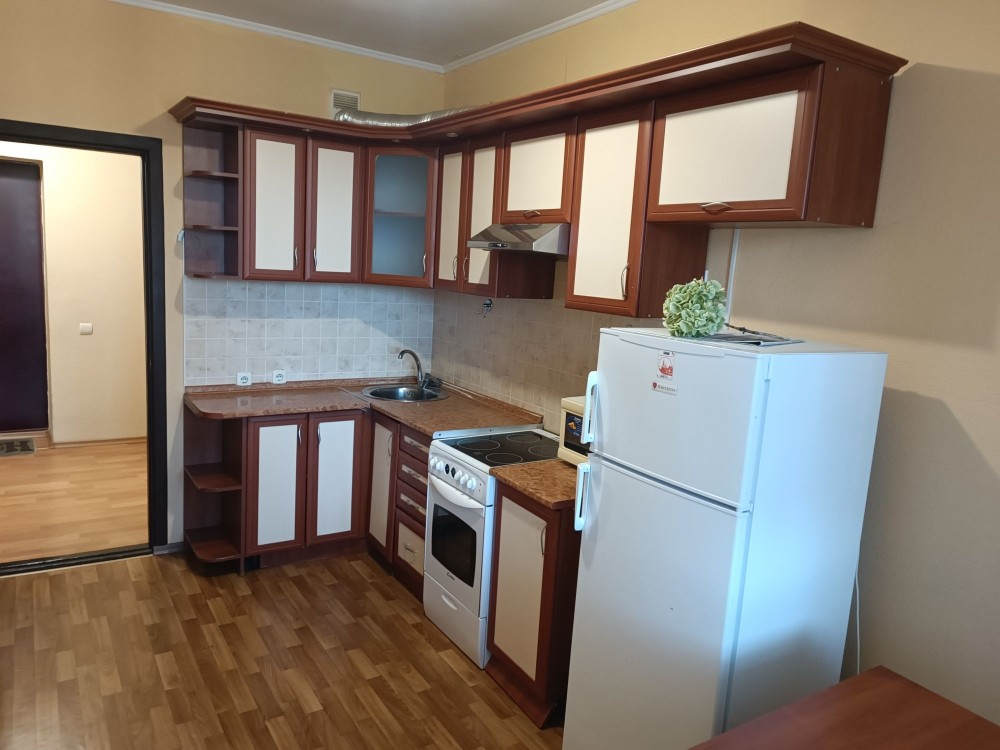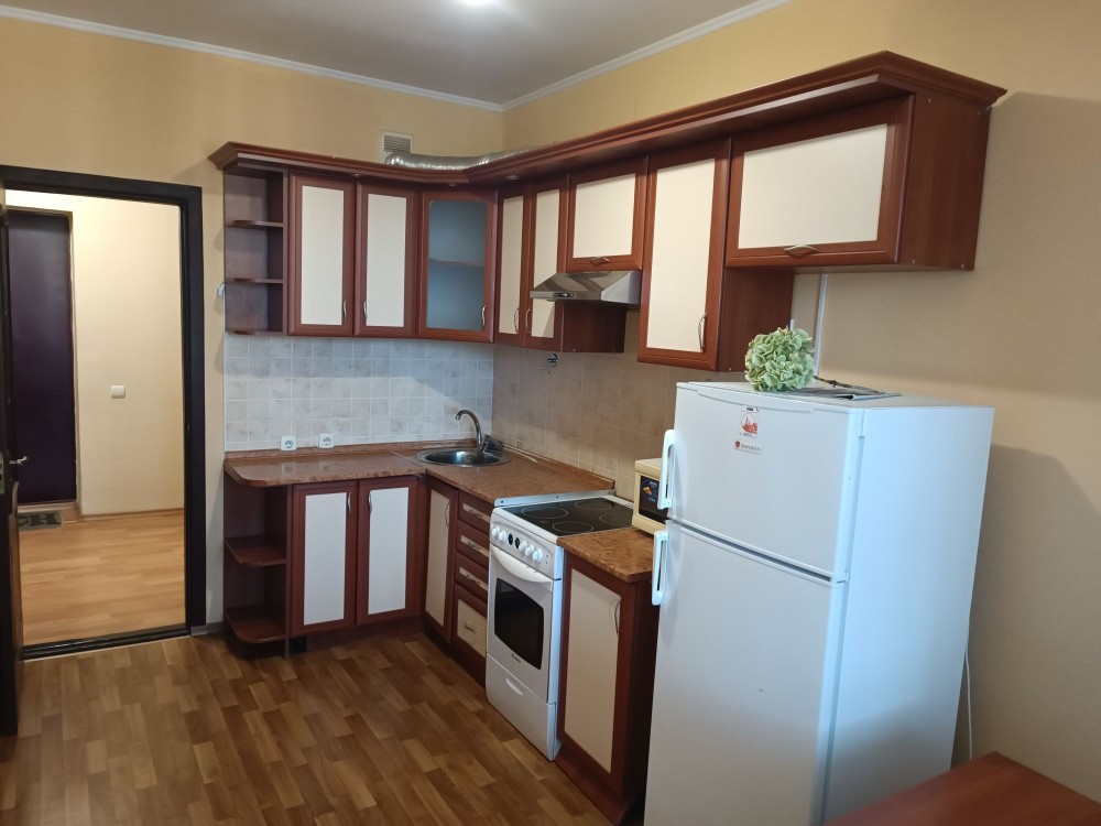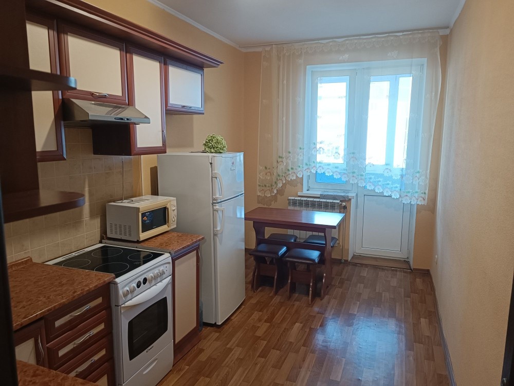 однокімнатна квартира двоспальне ліжко, все необхідна побутова техніка та меблі. дешеві комунальні автономне опалення на дом. робить консьєрж. гарна транспортна розв'язка, робить два ліфта.