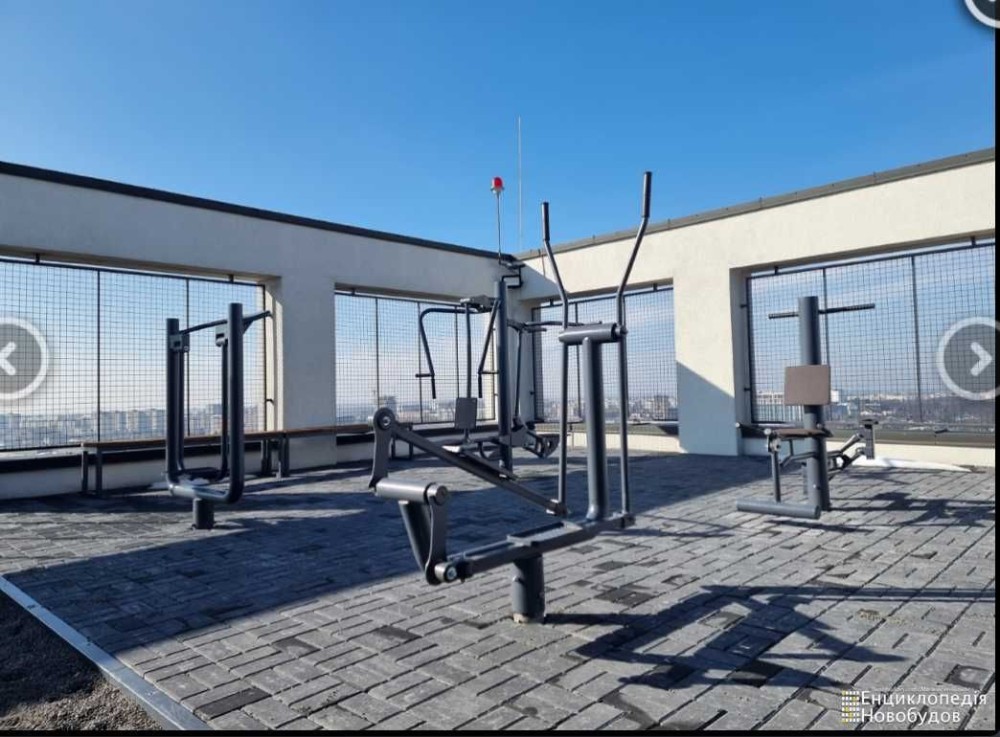 На даху волейбольна і тренажерна площадка .