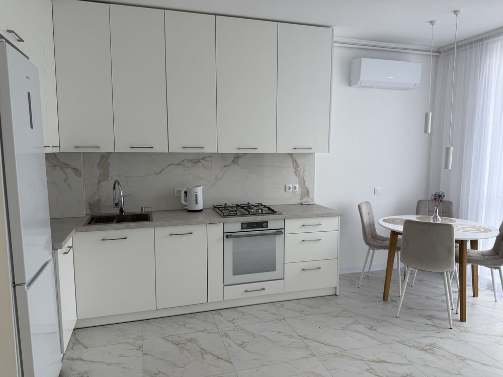 Перша здача. Пропонується в оренду сучасна квартира в новобудові біля м. Житомирська (Берестейський пр-т, 131а). В будинку є генератор (завжди є опалення, вода та працює ліфт). Квартира укомплектована всіма необхідними меблями та технікою. У кімнаті - двоспальне ліжко, розкладний диван, письмовий стіл, кондиціонер, телевізор, велика шафа для одягу. Санвузол суміщений, душова кабінка. Тихий двір, велика парковка. До метро Житомирська - 10 хвилин пішки. Вартість 16000 грн. Умови оренди: оплата за два місяці та послуги рієлтора (50%). комісія: 50%