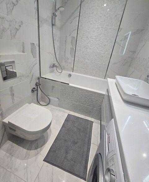 Бойлер, душевая кабина, стиральная машина, мебель в кухне и жилых комнатах .