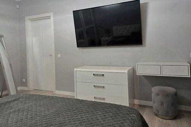 Є вся необхідна техніка: холодильник, духова піч, мікрохвильова піч, електрочайник, посудомийна машина, пральна машина, 2 телевізори.