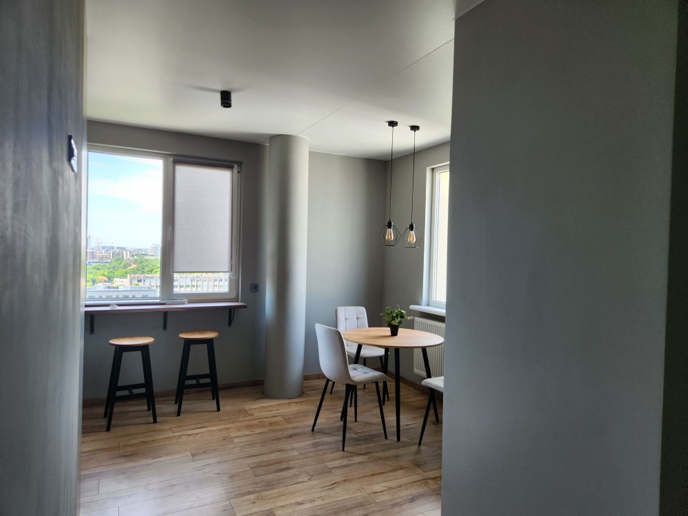 Перша здача. Пропонується в оренду сучасна квартира в новобудові біля м. Житомирська (Берестейський пр-т, 131а). В будинку є генератор (завжди є опалення, вода та працює ліфт). Квартира укомплектована всіма необхідними меблями та технікою. У кімнаті - двоспальне ліжко, розкладний диван, письмовий стіл, кондиціонер, телевізор, велика шафа для одягу. Санвузол суміщений, душова кабінка. Тихий двір, велика парковка. До метро Житомирська - 10 хвилин пішки. Вартість 16000 грн. Умови оренди: оплата за два місяці та послуги рієлтора (50%). комісія: 50%
