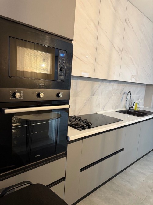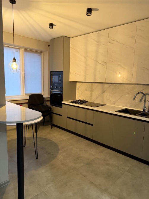 Кухня повністю облаштована: є посудомийна машина, духова шафа, мікрохвильова піч, варильна поверхня та всі необхідні меблі.