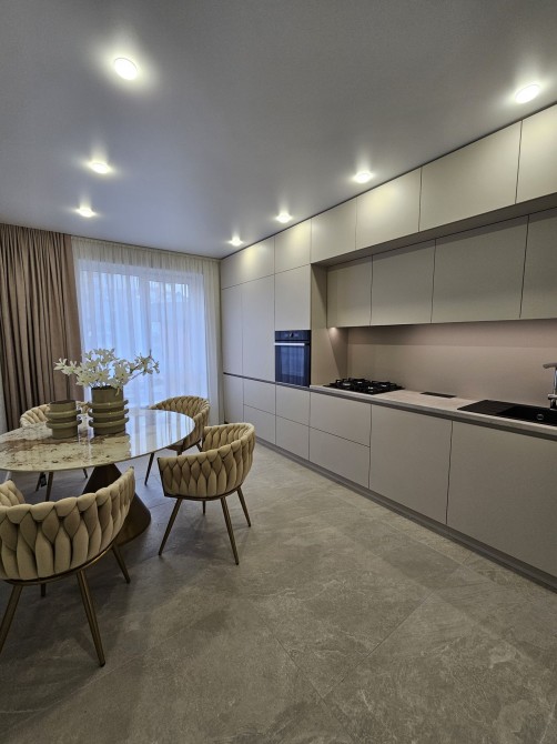 • Сучасна вбудована кухня зі всією необхідною технікою: посудомийна машина, духова шафа, вмонтований холодильник.