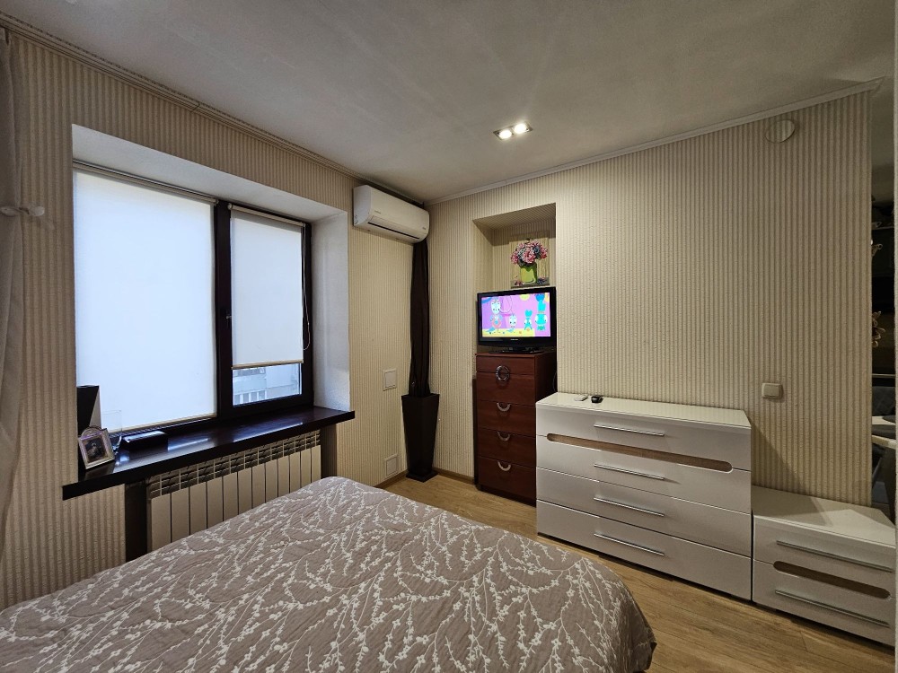 Пропонується в оренду простора 1-кімнатна квартира з переплануванням у цегляному будинку (на 8 поверсі). В квартирі проживали тільки власники — усе в ідеальному стані.
