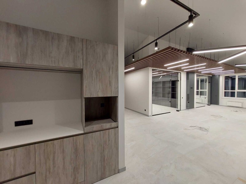 Оренда офісу з дизайнерським ремонтом в новому БЦ, Офіс 132 кв.м., з ремонтом і частково меблеваний, 4/4 будівлі, ліфт, всі комунікації (вільне планування, плюс 2 кабінети, вбудована кухня, рісепшен). Цілодобовий доступ, наземне паркування. Ціна 100 000 гривень в місяць, плюс комунальні витрати.