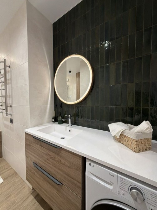 Є уся необхідна побутова техніка для комфортного проживання: прально-сушильна машина, кондиціонер, мікрохвильова та духова печі, посудомийна машина, телевізор.