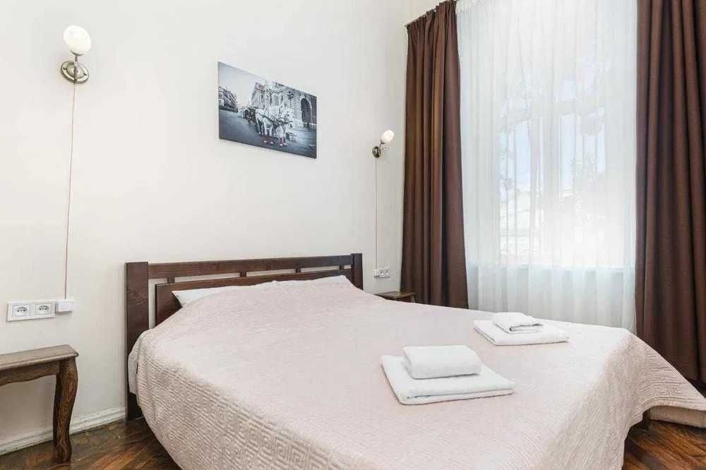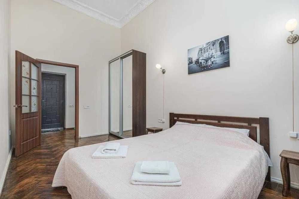 Спальна кімната має двоспальне ліжко з ортопедичним матрацом для міцного сну. Для вашого комфортного перебування в квартирі також є Wi-Fi.