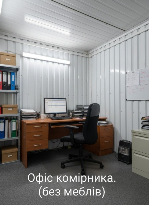 — Наявний офіс комірника в окремій конструкції (без меблів).