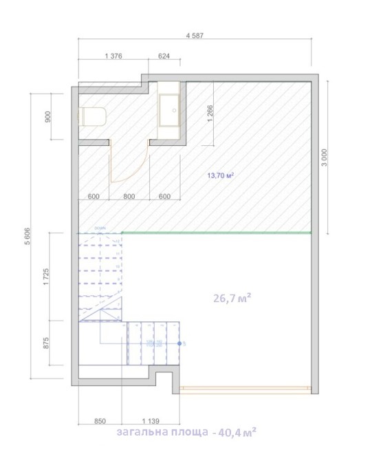 - площа: 40,5 та 38,5 м2