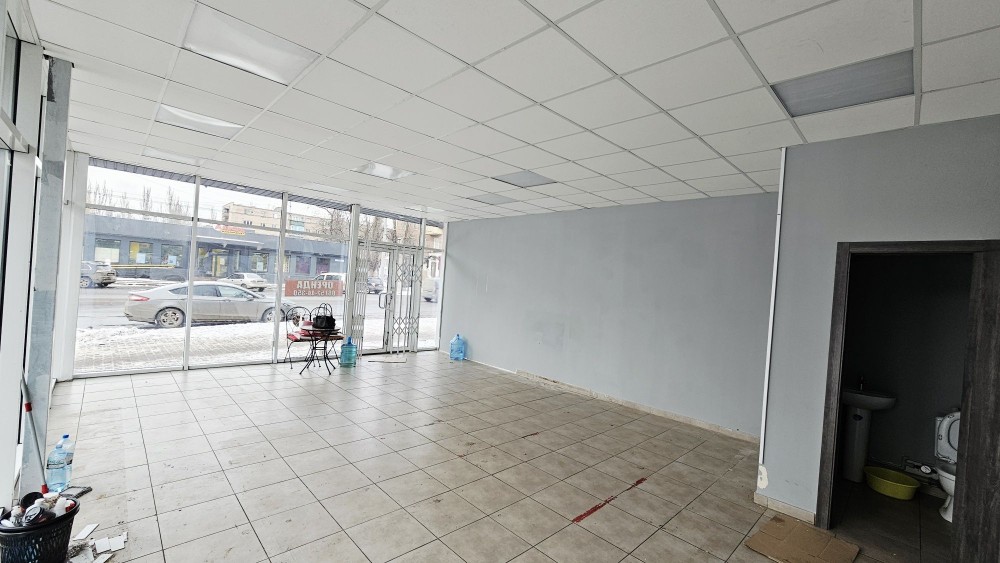 Приміщення кутове, повністю вітрині вікна, правильної форми, в дальньому лівому куту санвузол.