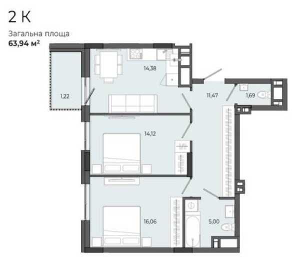 • Общая площадь 63.94 м2