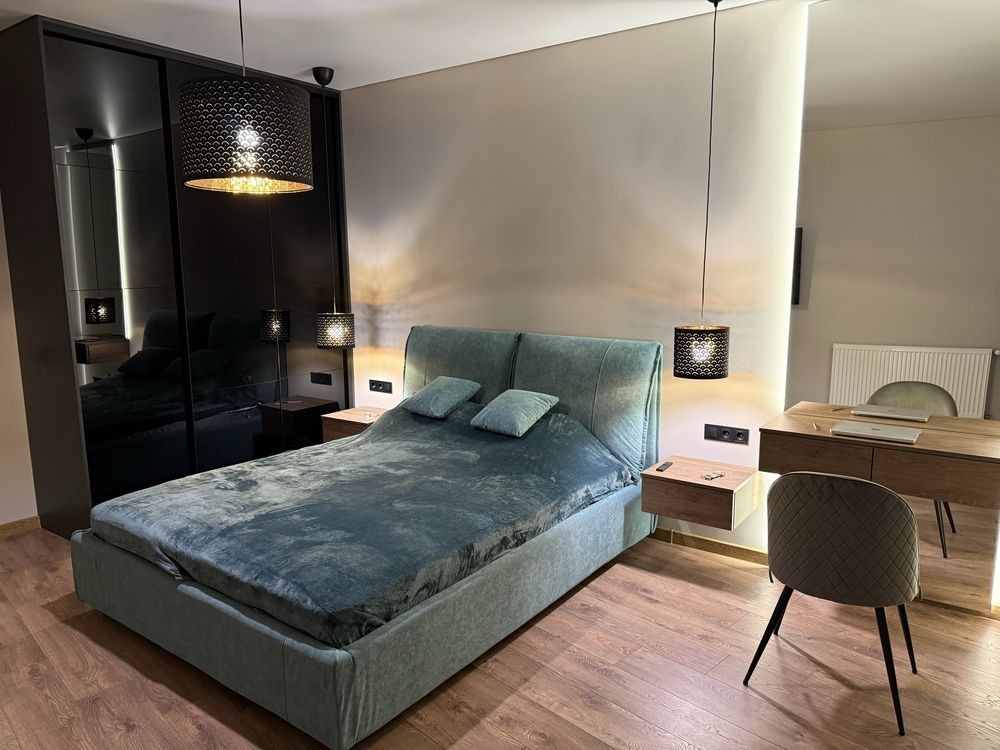 Велика спальня з робочим місцем.