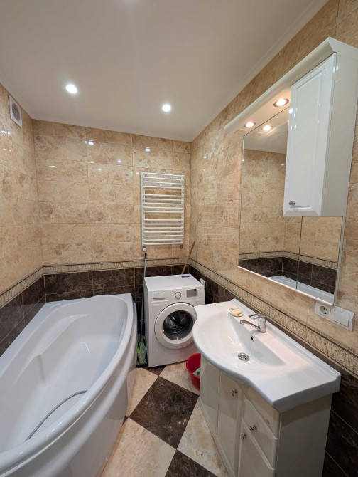 Встановлена велика ванна, пральна машина та гігієнічний душ (біде).