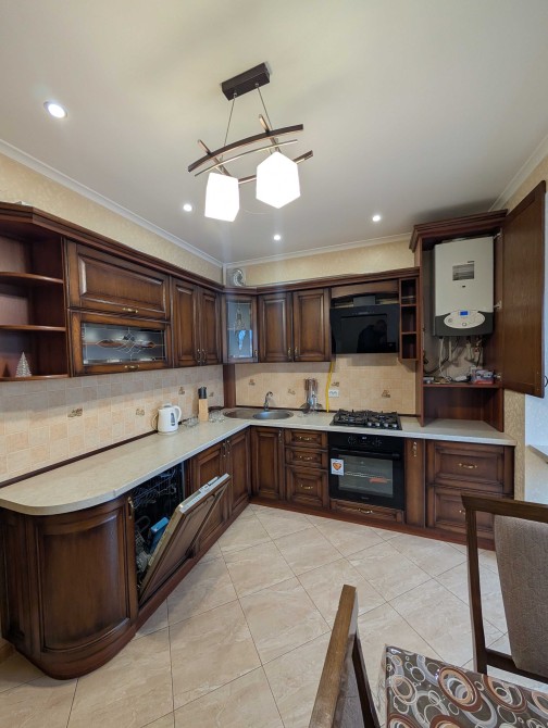 Вбудована техніка: посудомийна машина, великий холодильник, професійна витяжка.