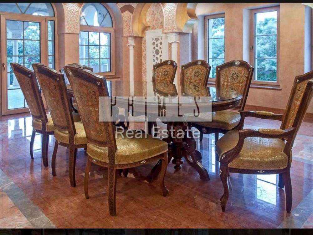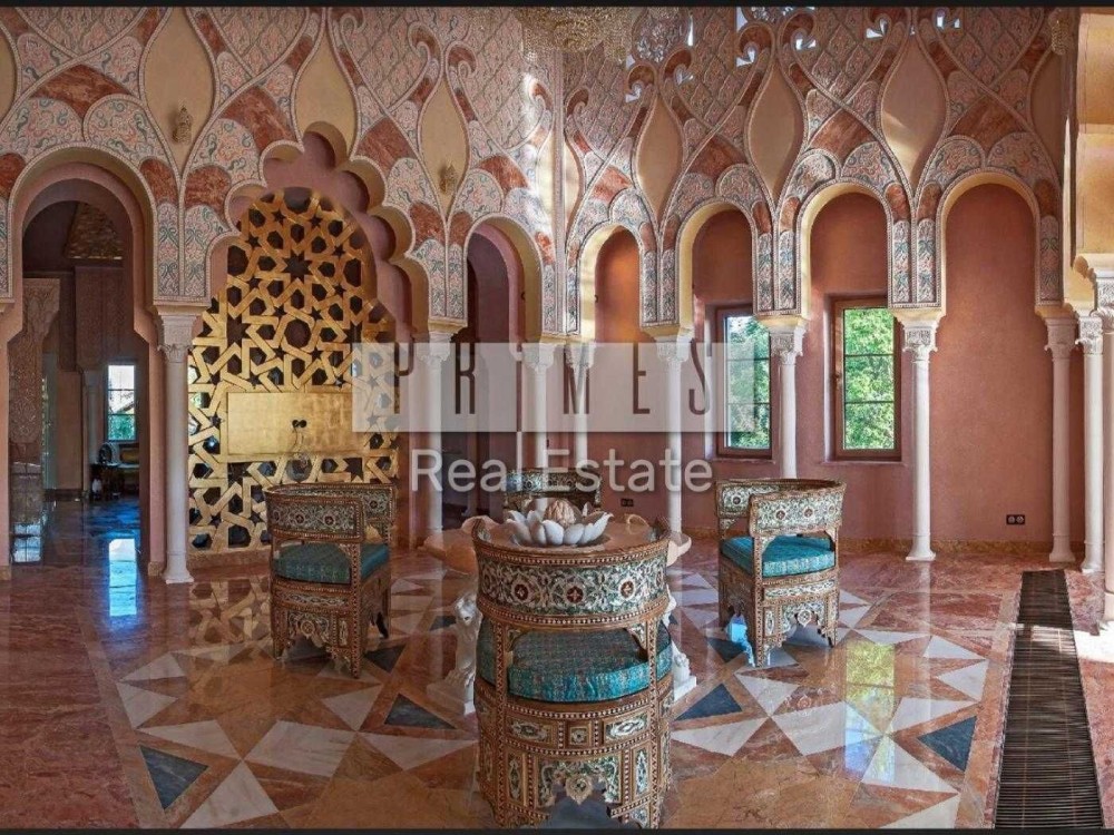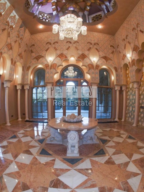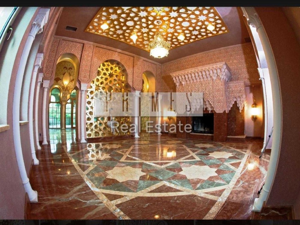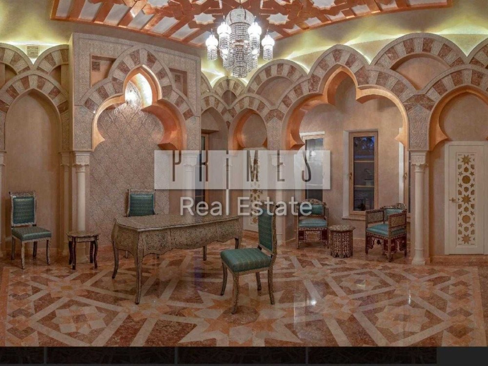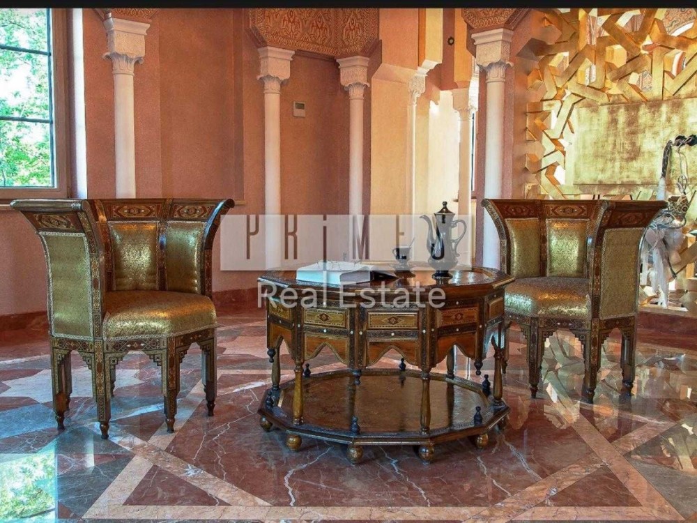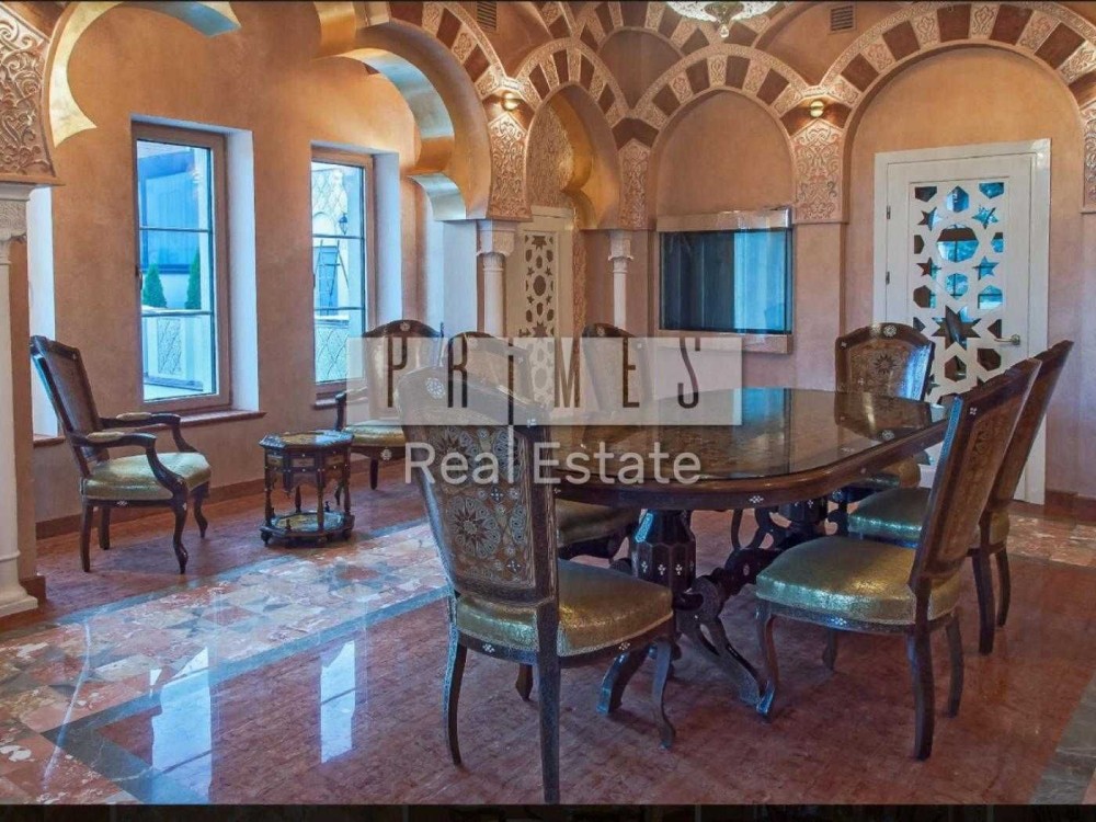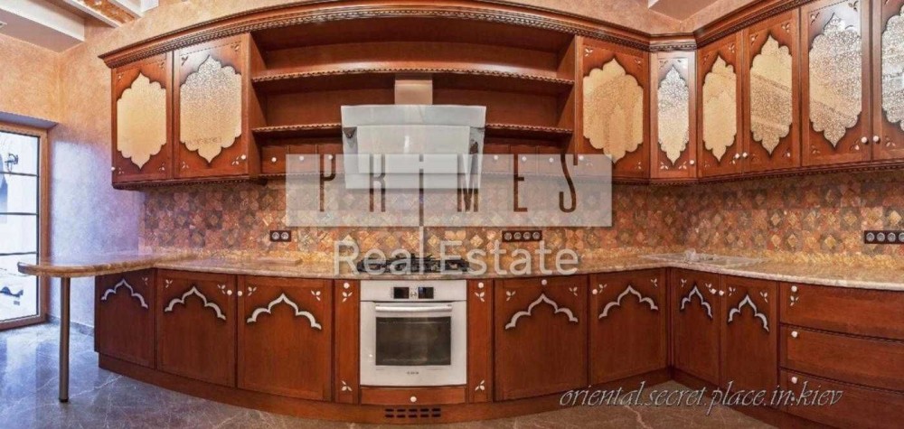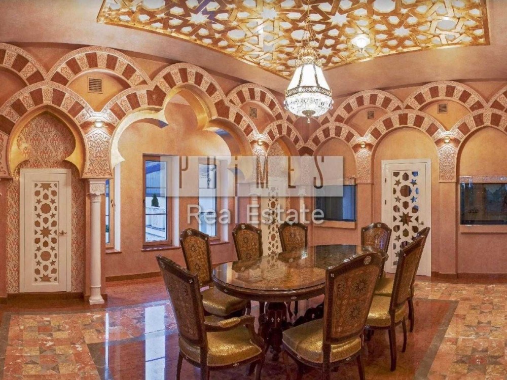 Чотириповерховий будинок виконаний в елегантному східному стилі, а його інтер'єр поєднує в собі вишуканість та продуману функціональність. На нульовому поверсі знаходиться винний льох, професійна кухня для кухаря з виходом у внутрішній двір, просторий басейн завдовжки 12 метрів та глибиною 1,5 метра, а також зона релаксації із сауною, хамамом та окремим санвузлом. Перший поверх вражає просторою вітальною, розділеною на дві зони, кабінетом із виходом на террасу, кухнею, поєднаною з їдальною зоною, двома санвузлами та зручною пральнею.