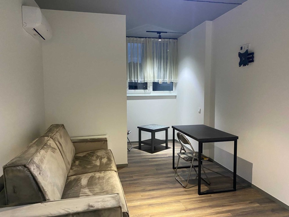 В кімнаті розкладний диван, столик, стіл, тумба. Поруч уся інфраструктура. Безліч магазинів, кафе, аптек. Зручна транспортна розвʼязка.