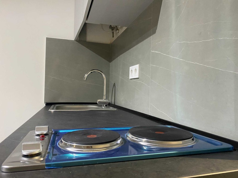 Вмонтована кухня, невеликий холодильник, кондиціонер, швидкісний інтернет, пральна машина, бойлер для гарячої води, чайник, мікрохвильова піч.