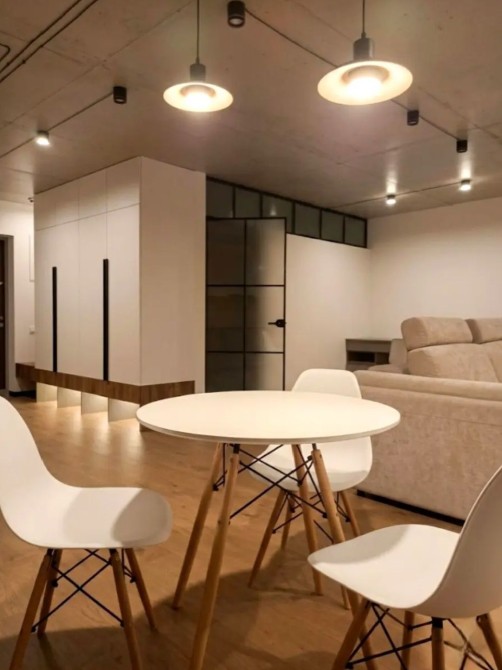 64 м² — простора, з продуманим зонуванням: кухня-їдальня, зона відпочинку, окрема спальня.