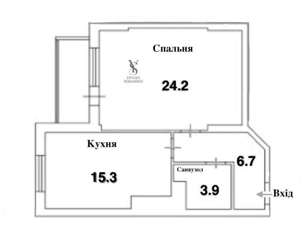 Загальна площа: 54 кв., окрема спальня, суміжний санвузол. Засклений балкон.