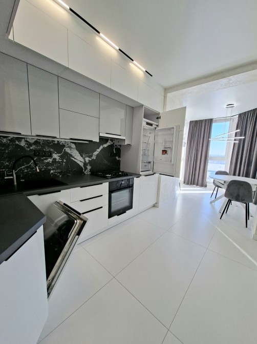 Новий, сучасний ремонт .Укомплектована всією необхідною технікою та меблями для комфортного проживання, а саме : Вбудована кухня з витяжкою, газова варочна поверхня, духова шафа, вбудований холодильник, посудомийна машина, мікрохвильова піч, стіл та стільці, двоспальне ліжко, великий смарт ТВ, кондиціонер, пральна та сушильна машини, двоспальне ліжко з підйомним механізмом, приліжкові тумби, дві шафи-купе, комп'ютерний стіл.