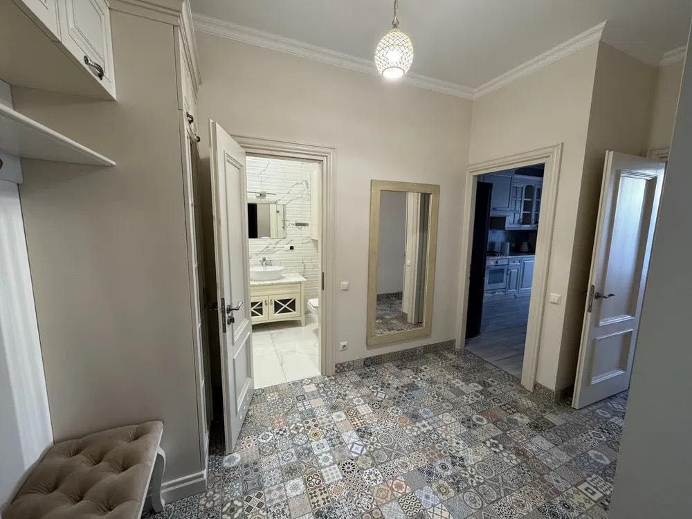 Квартира має панорамні вікна, які наповнюють простір світлом і створюють відчуття простору. Встановлено підігрів підлоги для максимального комфорту в холодну пору року. Продумане планування включає окрему гардеробну кімнату, що забезпечує зручне зберігання речей та порядок у житлі.