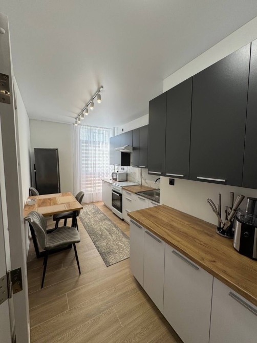 Квартира облаштована необхідними меблями та технікою: електрична плита, духовка та інша побутова техніка. Санвузол з ванною. Також є гардеробна кімната, яку можна використовувати як кладову.