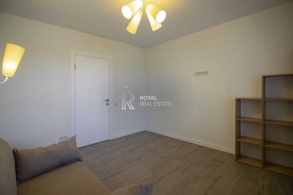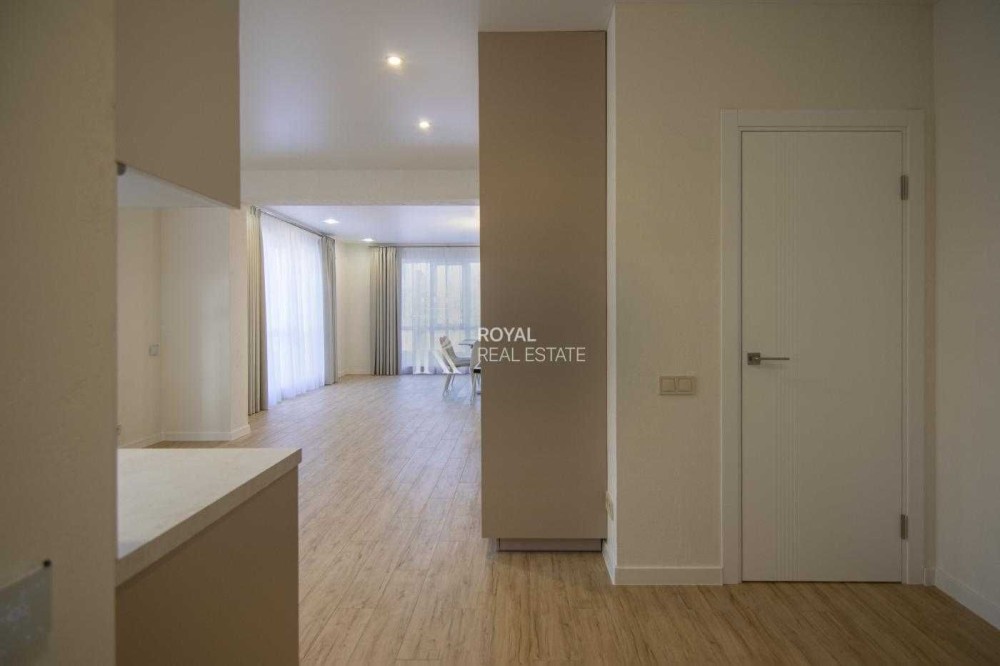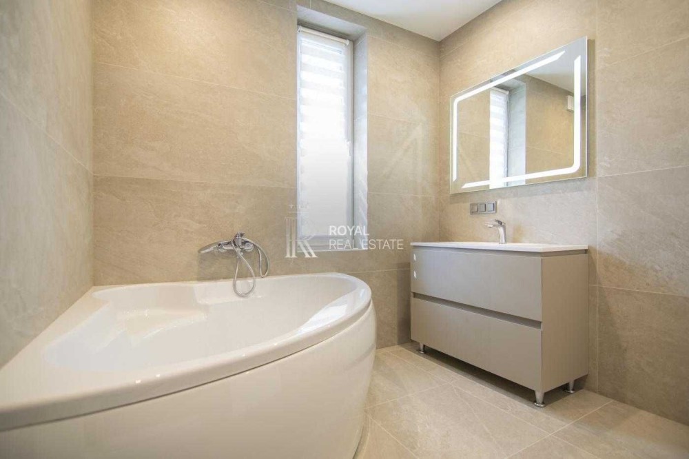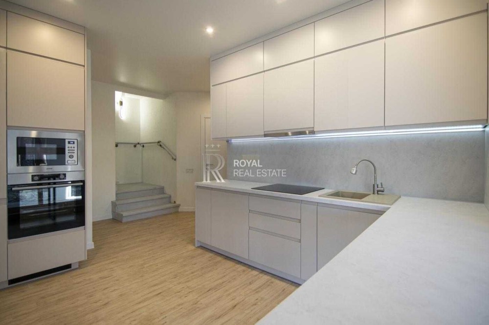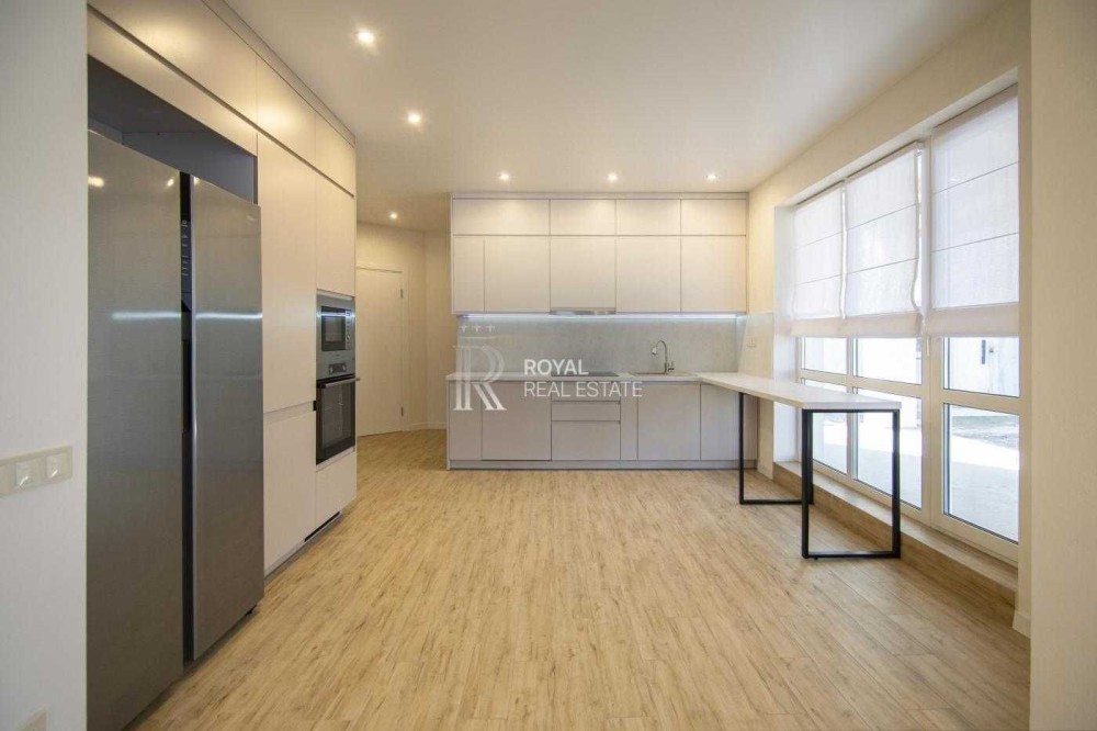 Планування продумане для сімейного життя: простора кухня-вітальня з виходом на терасу, три окремі спальні, два санвузли, гардеробна та технічне приміщення. Великі вікна додають світла та простору.