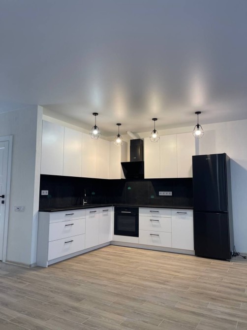 - Велика кухня з холодильником, духовою шафою, плитою та витяжкою.