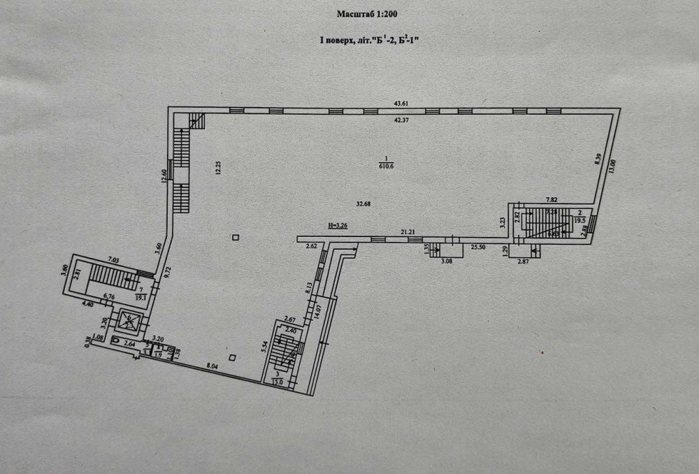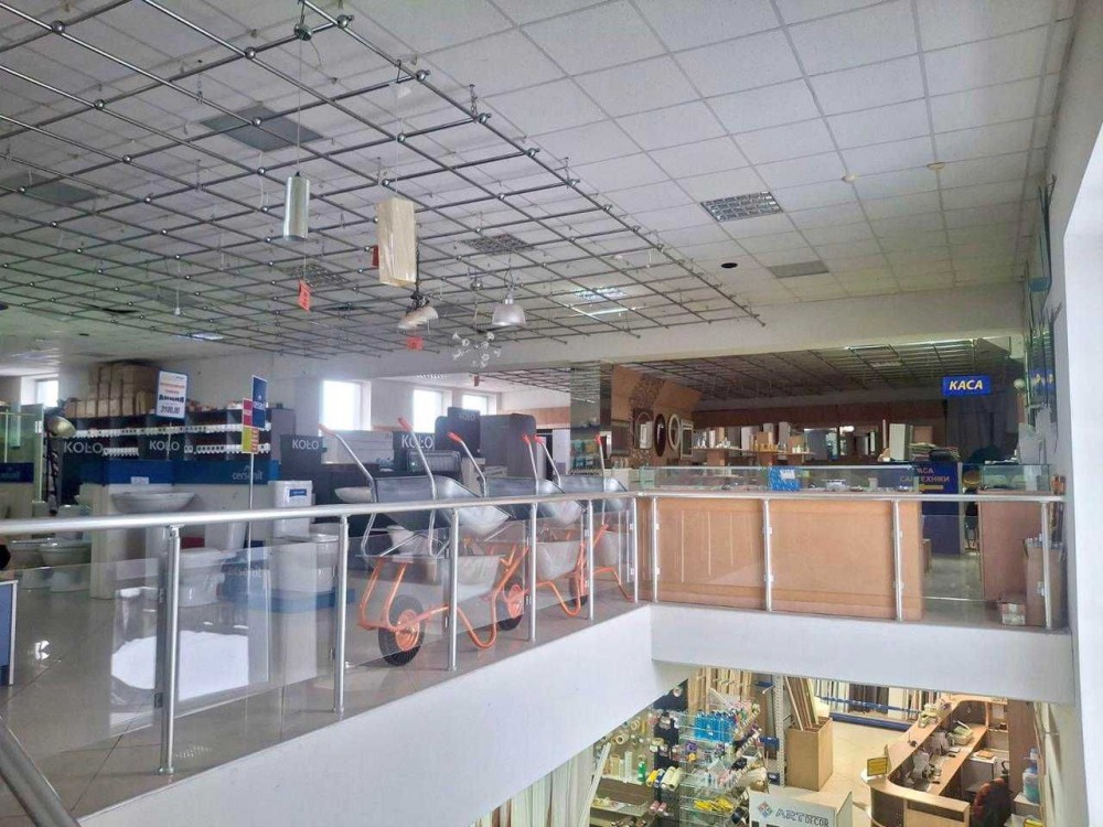 - Приміщення з трьох поверхів, перший та другий - торгівельні зали по 600 м2. Третій - офісна надбудова з суміжно-роздільним плануванням, що складається з приміщень та кабінетів 8, 13, 17, 25 та 57 м2. Санвузли на всіх трьох поверхах. Є вантажний ліфт. Прилягаюча територія зі зручною можливістю вивантаження-завантаження. Можливе надання складського приміщення до 100 м2.