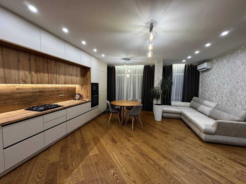 Здається простора євродвушка з дизайнерським ремонтом: кухня-вітальня + окрема спальня. Квартира повністю мебльована, з високим рівнем автономності та комфорту.