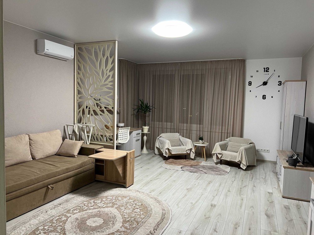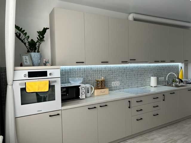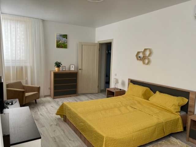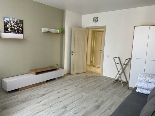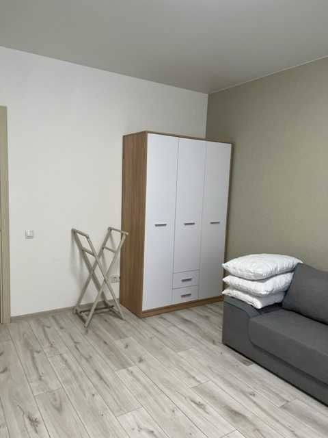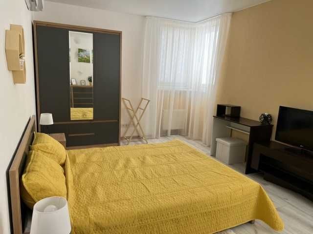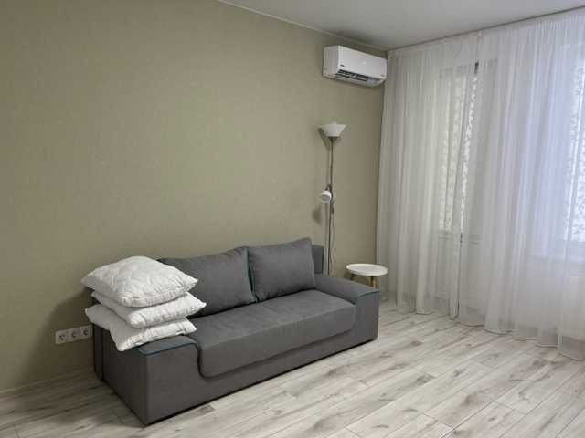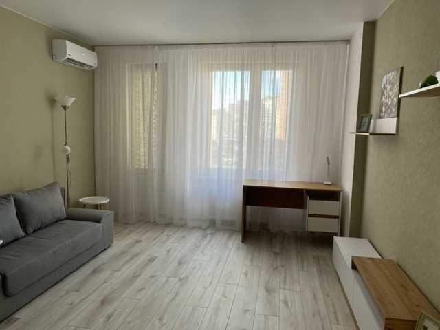 Перша здача. Пропонується в оренду сучасна квартира в новобудові біля м. Житомирська (Берестейський пр-т, 131а). В будинку є генератор (завжди є опалення, вода та працює ліфт). Квартира укомплектована всіма необхідними меблями та технікою. У кімнаті - двоспальне ліжко, розкладний диван, письмовий стіл, кондиціонер, телевізор, велика шафа для одягу. Санвузол суміщений, душова кабінка. Тихий двір, велика парковка. До метро Житомирська - 10 хвилин пішки. Вартість 16000 грн. Умови оренди: оплата за два місяці та послуги рієлтора (50%). комісія: 50%