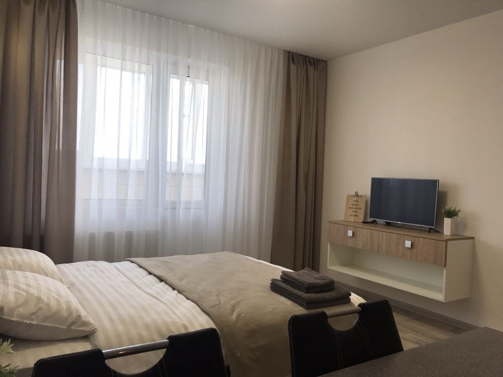 Пропонуємо в оренду на строк від 1 до 3 місяців сучасну квартиру-студію в ЖК Святобор по вулиці Львівська 11, в 600 метрах від метро Святошин.